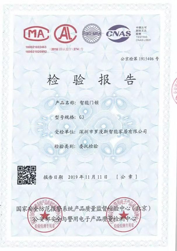 近日,羅曼斯的A8全自動智能鎖和新品G3智能門鎖嚴格按照相關規(guī)定和要求,分別通過了中國賽寶實驗室檢測認證、公安部安全與警用電子產品質量檢測中心&國家安全防范報警系統(tǒng)產品質量監(jiān)督檢驗中心認證。